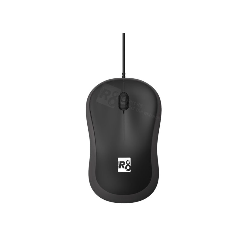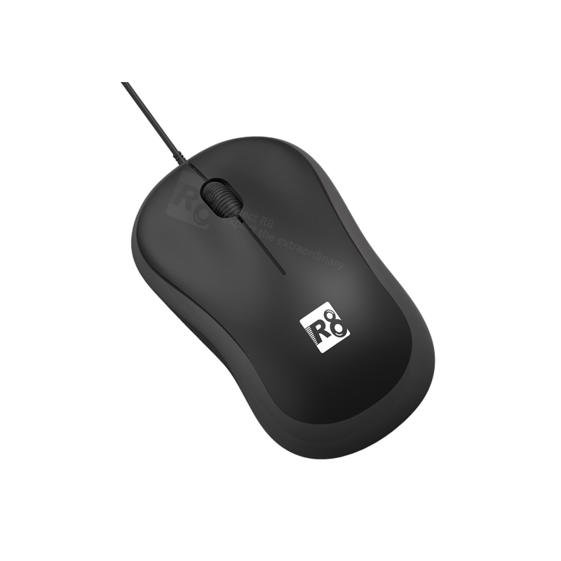 Souris optique R8 1650 - Boutons : 3D - Résolution : 1000 dpi - Connexion USB - Durée de vie des touches : 10 millions de frappes - Couleur Noir