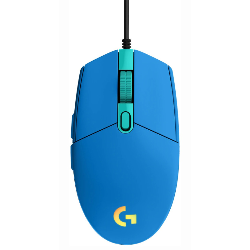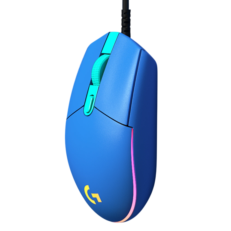 Souris Gaming Logitech G102 Lightsync - Éclairage RGB LIGHTSYNC - 6 boutons programmables - Résolution 200 - 8 000 DPI - Format de données USB 16 bits / axe - Taux de rapport USB 1000 Hz (1 ms) - Microprocesseur ARM 32 bits - Dimensions 116.6 x 62.15 x 38.2 mm - Poids 85 g - Longueur du câble 2.1 m - Couleur Bleu - Garantie 1 an