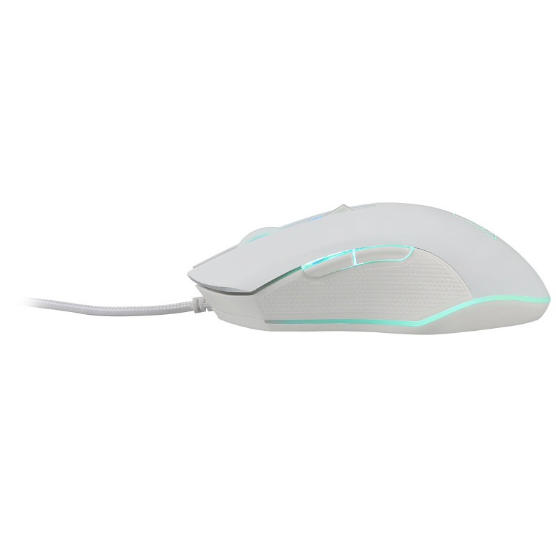 Souris gamer G-LAB - Résolution : 800 - 3200 dpi - Polling Rate : 125 Hz - 6 boutons - Accélération : jusqu'à 10G - Rétro-éclairage 7 couleurs distinctes - Cordon tressé résistant : 1.8 m - Poids : 135 g - Compatible PC/MAC - Couleur Blanc - Garantie 1 an