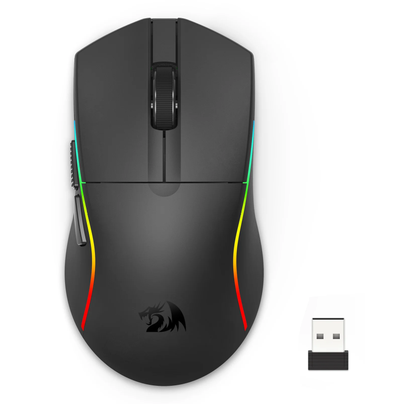 Souris Redragon Deicide Standard - 6x Boutons programmables - Fréquence de rafraîchissement : 1000 Hz - Rétroéclairage RGB - Résolution : 24000 DPI - Autonomie de la batterie de 200 heures - Connectivité : adaptateur USB / Bluetooth / 2,4 GHz - Ultra-léger 61 g - Couleur Noir - Garantie 1 an