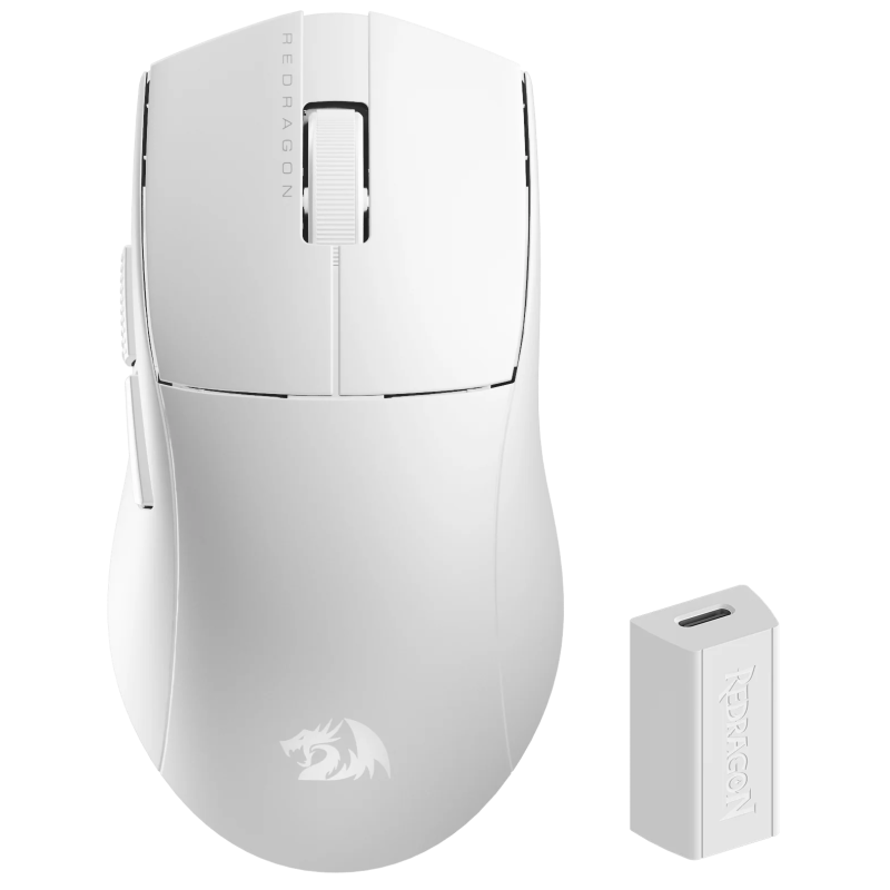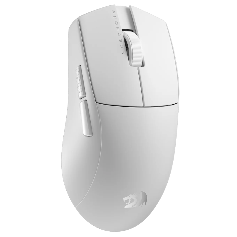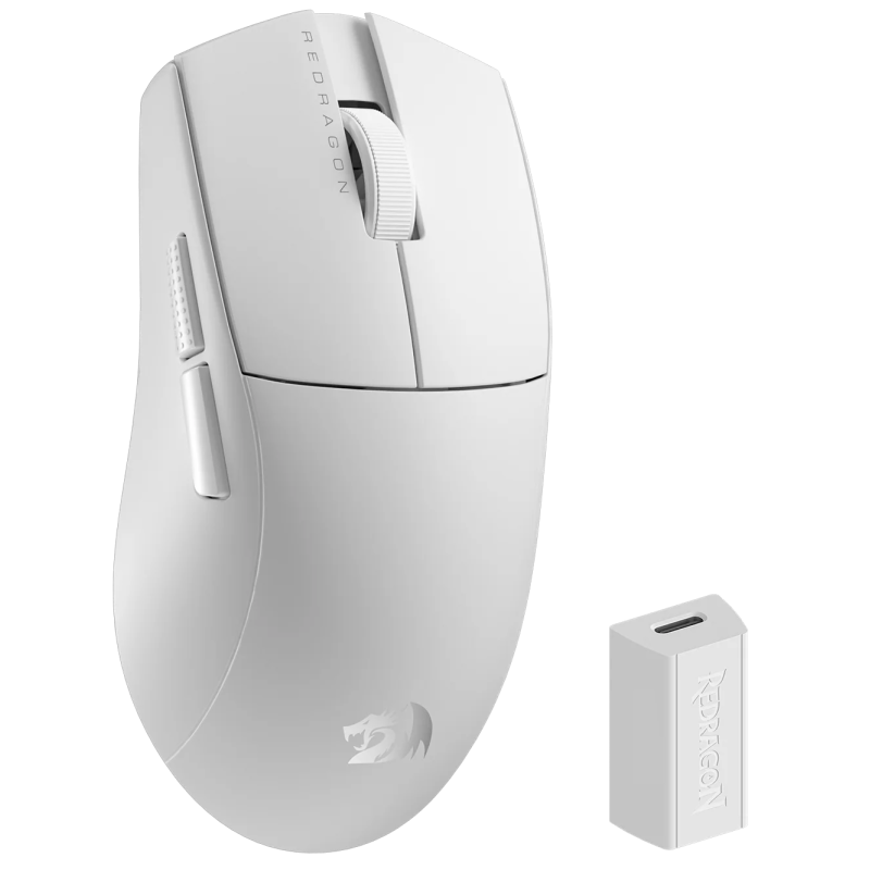 Souris sans fil gamer Redragon K1NG Standard 1K - 5 Boutons programmables - Connectivité : adaptateur USB / Bluetooth / 2,4 GHz - Capteur : PAW 3311 - 24 000 DPI Max - 5 niveaux de DPI redéfinissables (par défaut : 1000/2000/4000/8000/12000) - Batterie : 400 mAh - ACC : 50G - Durée de vie des boutons : 50 millions - Poids : 49 g - Couleur Blanc - Garantie 1 an
