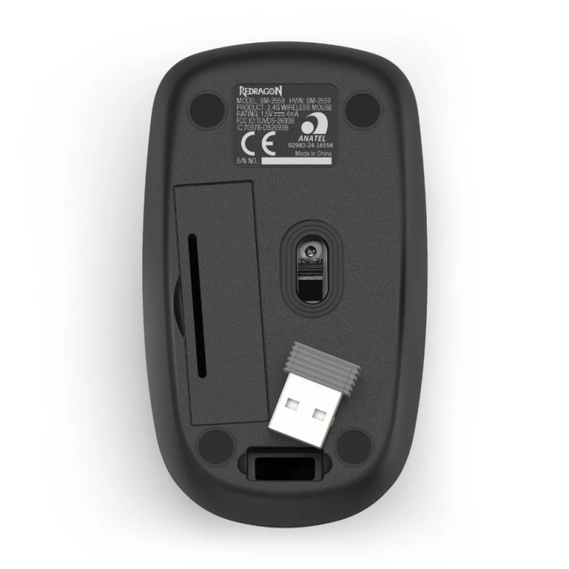 Souris Sans fil Redragon BM2559 - 3 Boutons - Niveaux de DPI : 800 / 1200 / 1600 DPI (réglable) - Connectivité Sans fil : 2,4 GHz - Mode économie d'énergie, indicateur de batterie faible, indicateur DPI - Systèmes d'exploitation compatibles : Windows et Mac - 1 pile AA (incluse) - Couleur Noir
