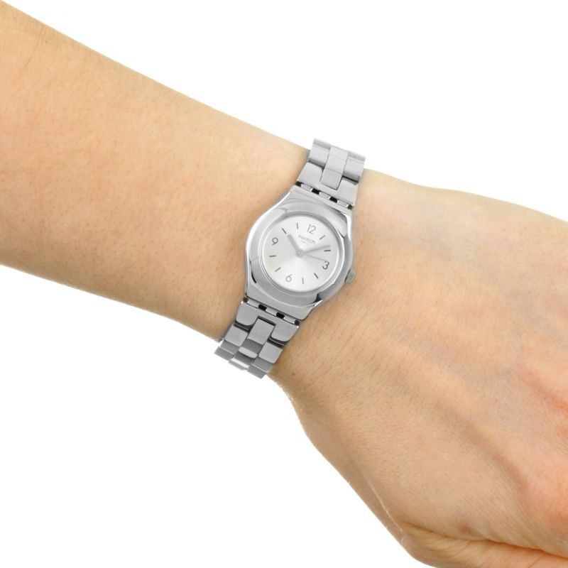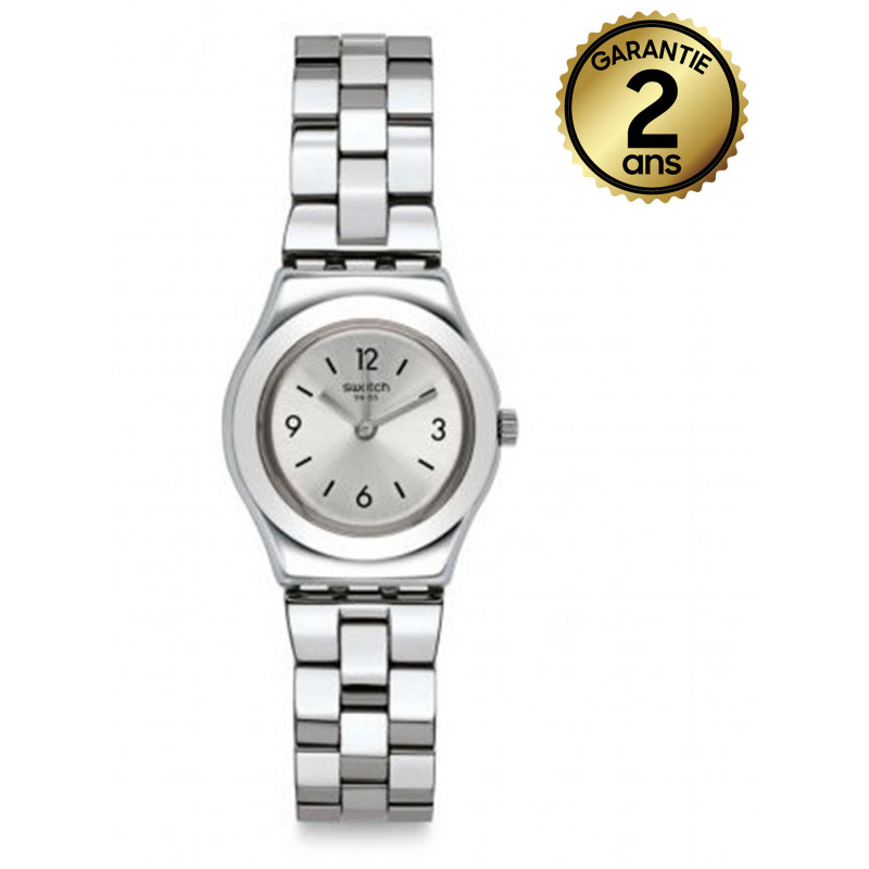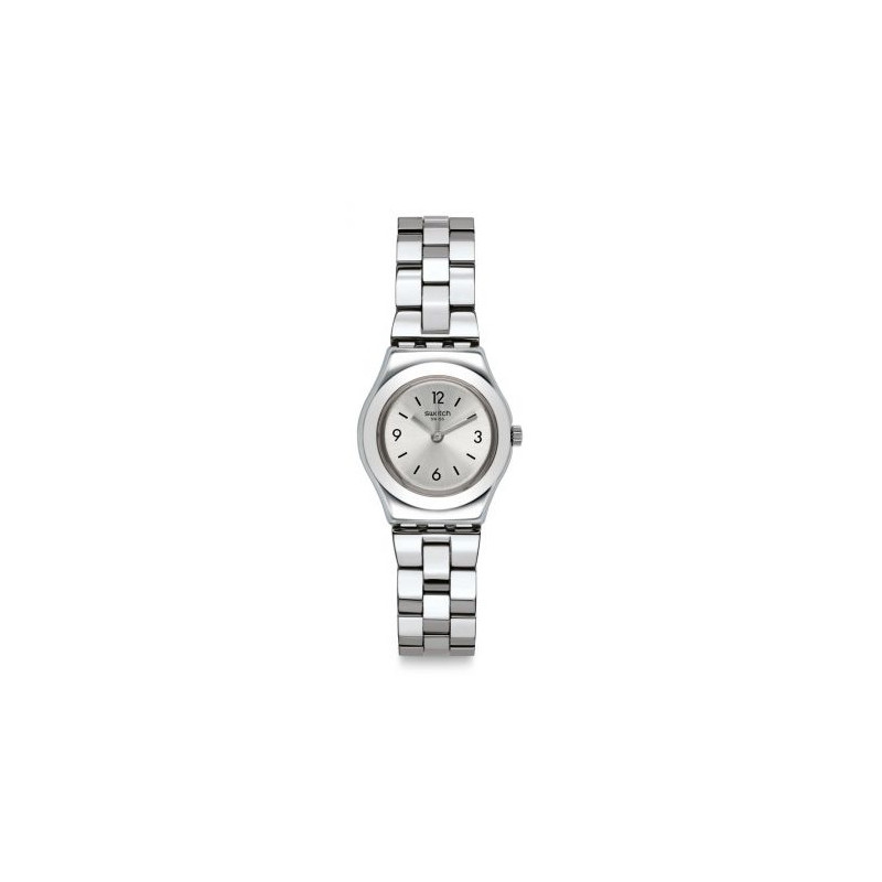 Montre Pour Femme Swatch Gradino YSS300G - Fonctions Heure - Mouvement Quartz - Étanche 3 Bar - Matière du bracelet Acier inoxydable ajustable, Gris - Couleur du cadran Gris - Taille: Small - Type de fermoir: Boucle bijoux - Dimensions: 25 x 8 x 28.70 mm - Garantie 2 ans