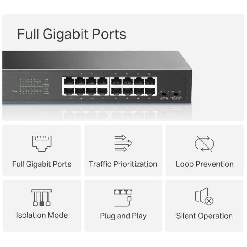 Switch de Bureau / rackable MERCUSYS MS116GS 16 Ports Gigabit 10/100/1000 Mbps