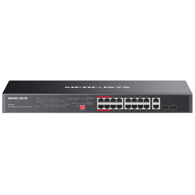 Switch Rackable Mercusys 16 Ports Giga PoE+ avec 2 Ports Giga et 2 SFP Slot 1Gb