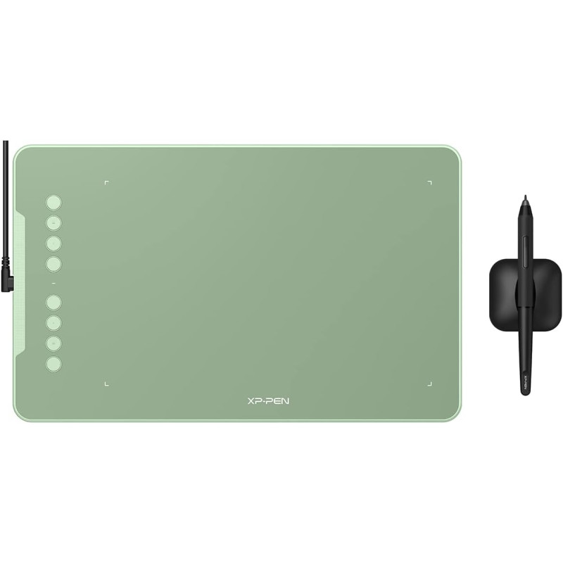 Tablette Graphique XP-PEN DECO 01 V3 - Stylet Sans batterie - Résolution 5080 LPI (lignes par pouce) - Sensibilité à la pression 16384 - 8 touches rapides personnalisables - Taux de rapport 220 RPS - Inclinaison 60° - Interface USB : USB-C - Hauteur de lecture 10mm - Zone active : 10 x 6,25 pouces - Compatibilité : Windows 7 (ou version ultérieure), Linux (versions détaillées), macOS 10.13 (ou version ultérieure), Android 10.0 (ou version ultérieure) et Chrome OS 88 (ou version ultérieure) - Dimensions 260.2 x 162.2 x 9.3 mm - Couleur Vert - Garantie 1 an