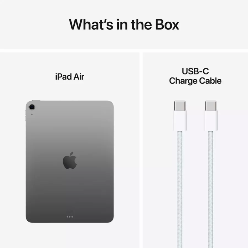 Écran tactile LCD IPS Liquid Retina 13" - Résolution d'affichage : 2732 x 2048 pixels - Processeur : Apple M3 (8 cœurs) - Mémoire RAM : 8 Go - Capacité de Stockage: 128 Go - Wi-Fi 6E - Bluetooth 5.3 - Résolution de l'appareil photo 12 Mpx - Caméra frontale 12 Mpx - Flash avant : True Tone + Flash Retina - Deux microphones, haut-parleurs stéréo intégrés - Capacité actuelle de la batterie : 36.59 Wh - Autonomie de la batterie : Max 10h - Capteurs Touch ID - Système opérateur : Apple iPadOS 18 - Interfaces USB-C - Couleur Gris - Garantie 1 an