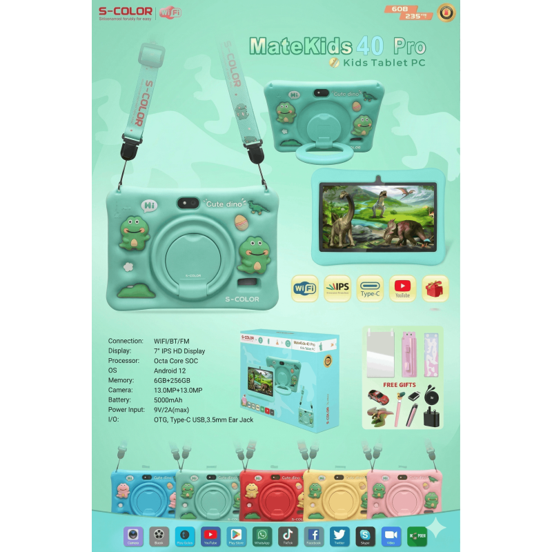 TABLETTE S-COLOR 40 PRO WIFI 6G/256G 7" ETUI + FILM + FREE GIFTS / Vert