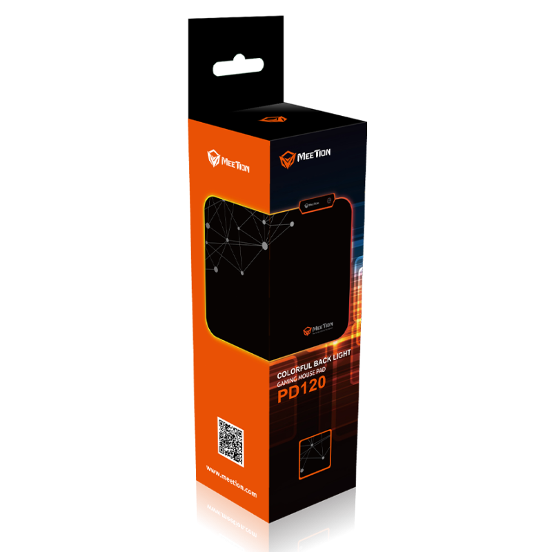 Tapis souris Gamer MEETION MT-PD120 - Puce lumineuse : LED RGB (réglable) - Matériau : caoutchouc + fibre - Base en caoutchouc antidérapante - Saisir : DC5V-150mA (max.) - Interface : USB - Micro USB (câble de 2 mètres) - Dimension : 355 x 265 x 4 mm - Poids : 200 ± 5 g - Couleur Noir