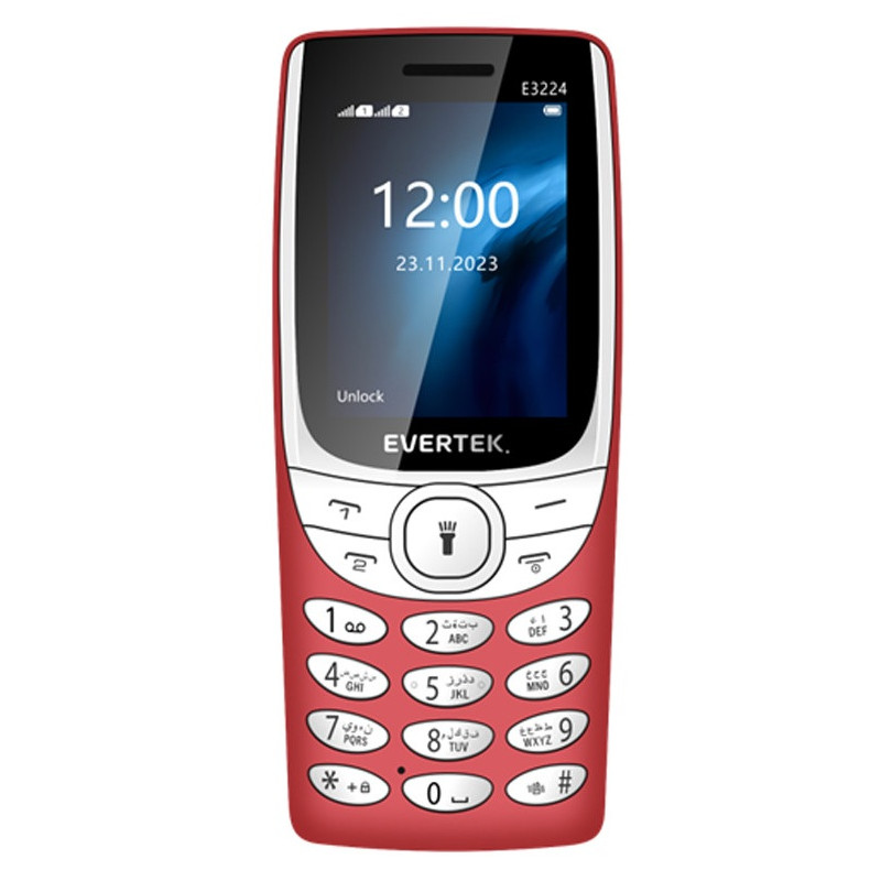 Dual SIM - Écran : 2.4" - Résolution : 240 x 320 pixels - Capacité batterie : 1800 mAh - Stockage extensible via carte microSD - Appareil Photo : 0.08 mp - Lampe torche - Radio FM (sans fil) - Bluetooth - Connecteurs : USB-C, Jack 3.5 mm - Couleur Rouge - Garantie : 1 an