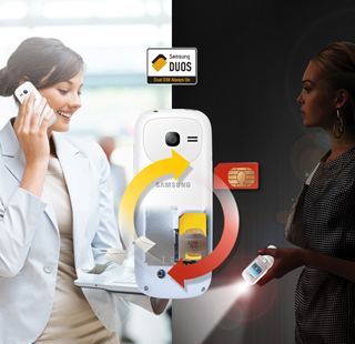 Grâce à la technologie DUOS intégrée au Samsung E2202, vous pouvez facilement basculer entre deux numéros de téléphone.