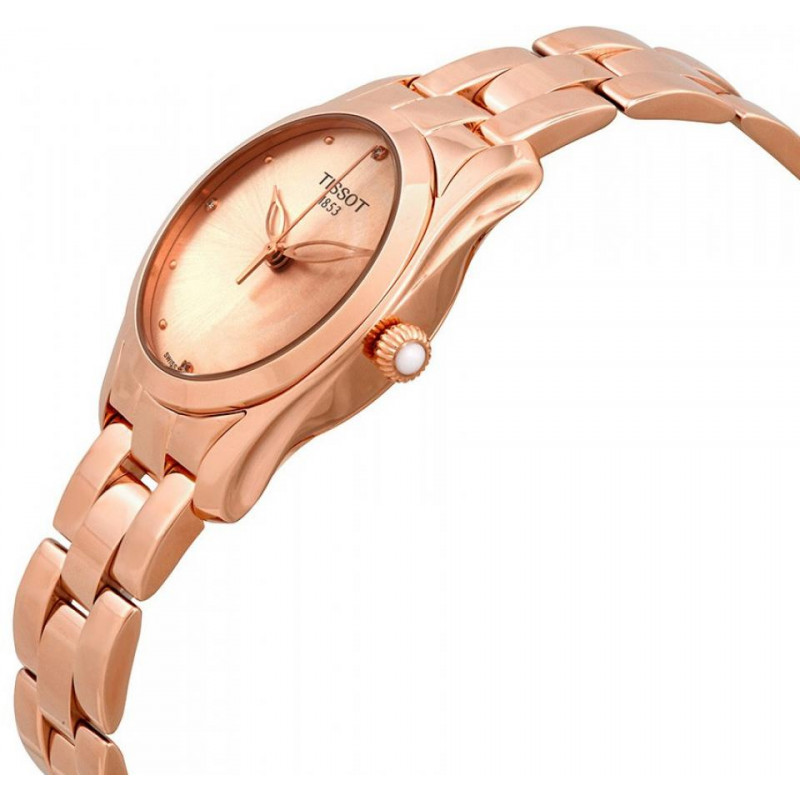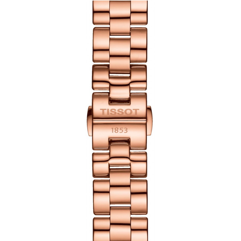 Montre pour Femme Tissot T-Wave T1122103345600 - Collection T-Lady - Mouvement Quartz - Etanche jusqu’à une pression de 3 bar (30 m/100 ft) - Glace Saphir bombée inrayable - Boitier et Bracelet en acier inoxydable 316L PVD Or Rose - Fermoir papillon à poussoirs - Couleur Rose Gold - Dimensions 30 x 30 x 8.7 mm - Garantie 2 ans