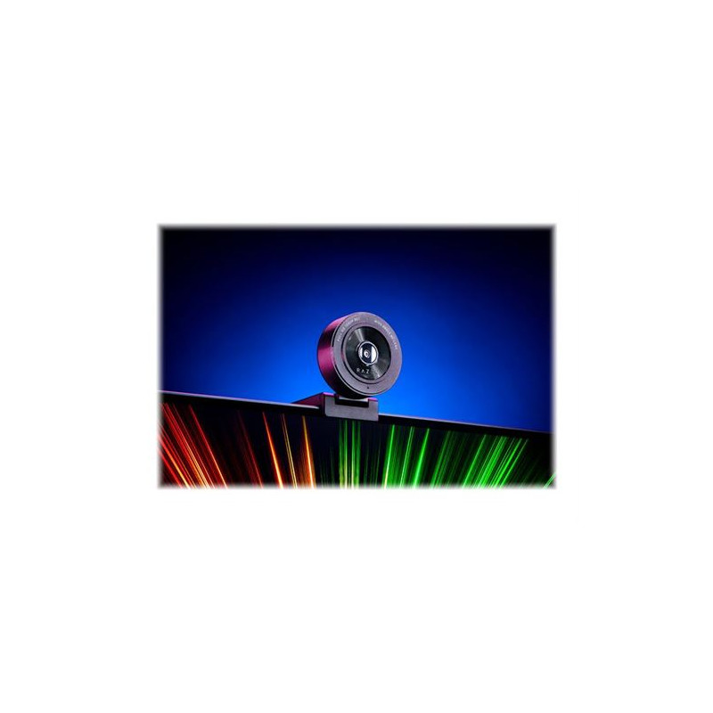 Webcam USB pour streaming Full HD Razer Kiyo X - Résolution maximale: 1920 x 1080 px - Connectique: 1 USB 2.0 - Compatibilité: PC, Mac - Résolution de la vidéo :1080p à 30 IPS/720p à 60 IPS/480p à 30 IPS/360p à 30 IPS - Champ de vision: 82° - Résolution de l’image: 2.1 mégapixels - Type de focus: Auto - Codec audio: 16bits à 48 kHz - Courbes de directivité: Omnidirectionnelle - Couleur Noir - Garantie 1 an